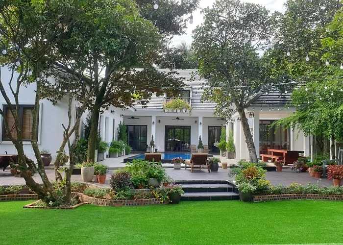 Located within 5 minutes' walk of Thanh Chuong's Viet Palace, the 5-bedroom Blue Mountain Villa - Venuestay includes a patio with views of the garden. Featuring a sauna, the accommodation is nestled nearly a 10-minute ride from Khu Sinh Thai Thien Phu Lam.